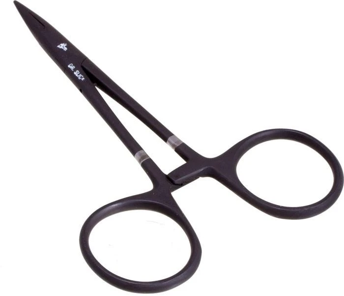 There are some color options, but the most popular is the “Prism Scissor Clamp” 5.5″, jokingly called the “Jerry Garcia” clamp. This baby is hip and very functional with a sharp set of scissors built into the traditional Dr. Slick clamp. If you’re NOT a Grateful Dead fan, they also come in Gold or Black. The scissors have a slightly serrated cutting edge and are VERY sharp.
