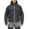 - Jacket length from collar to hem hits just below the waist to pair with waders and is versatile for on deck performance