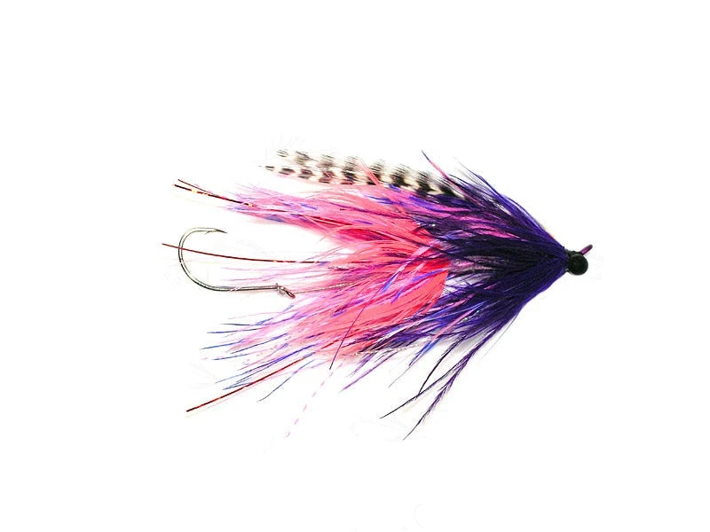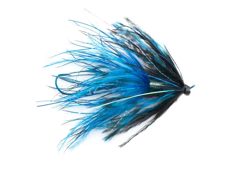 Stu’s Barred Ostrich Intruders are tied using barred ostrich that we dye in house. The intruder is on an Aqua Flies 43mm shank with 5/32″ brass eyes. Flies rigged with an AquaTalon hook.